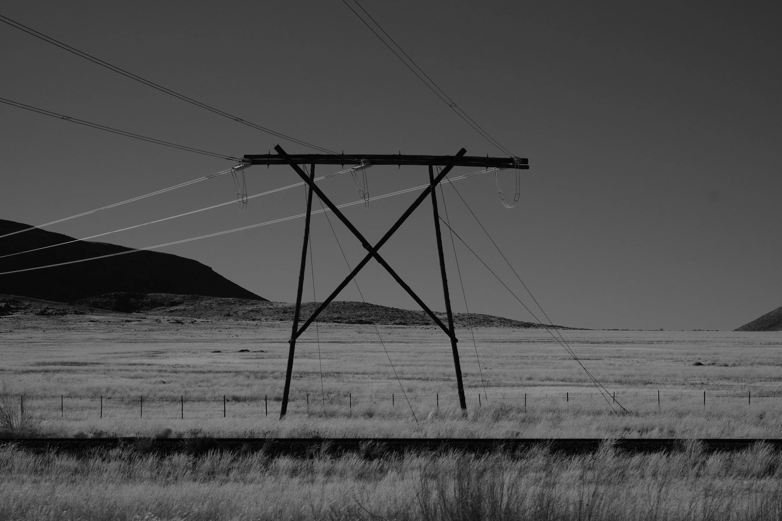 Power lines to the left and to the right.